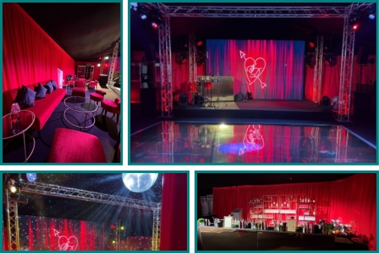 We’ve recently expanded our Pleated Linings hire collection with striking new red pleated walls made in Elegance fabric. As shown in the images, when paired with blackout roof linings, they create a striking, standout environment perfect for weddings, parties, and corporate events.