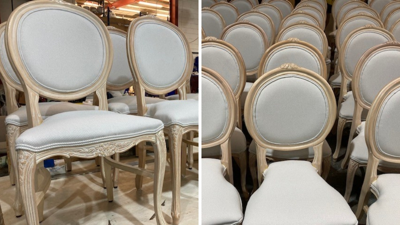 - Much like seat pad recovering, reupholstering existing chairs is a cost-effective way to refresh their appearance while preserving the original framework, especially when the design complements your existing interior. This approach not only extends the life of your furniture but also maintains the character of your space. Recently, we reupholstered over 100 elegant Louis-style chairs, giving them a renewed look while retaining their classic charm.